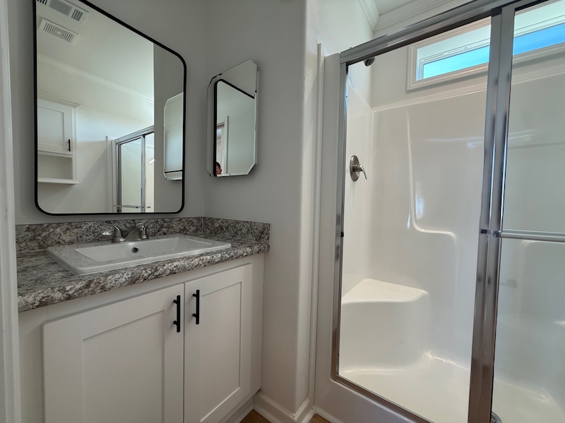 This brand new 1 bedroom 1 bath lake front home is now available and move in ready! This home is a skyline home with tons of natural light, 9ft. ceilings with tray, a spacious center island and a huge front porch over looking the lake. This home comes with ample built in storage, a metal roof and all composite decking making for an low maintenance stress free home. Give us a call today to learn more!Features