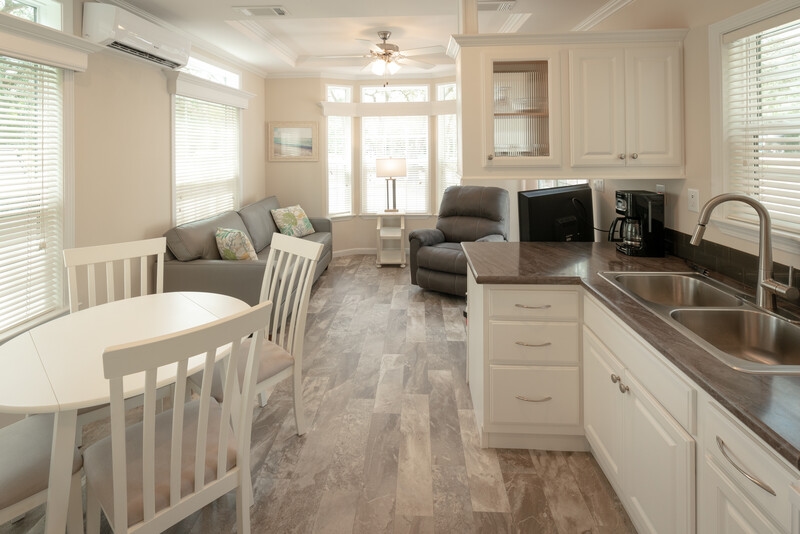 Sweet and simple, easy living in this one bedroom park model. Complete with furnishings and appliances. Ready to move to your property or keep it here on an annual lease. Lease includes access to all the resort amenities. Water, sewer, cable and Wi-Fi included. Electricity is billed separately. Schedule a tour today!Features