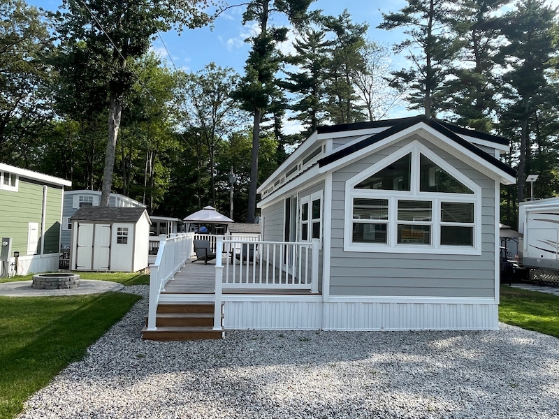 This custom, Great Outdoor Cottage Park Model is the perfect summer escape! Interior includes finished drywall, two-head tile shower, plenty of storage, queen bed in the main bedroom, loft, L-shape couch and AC/Heat pump system. Your site will include stone paver & wood-burning fireplace combination, 10’x35’ deck, skirting, 8 x 8 shed, plenty of parking and professionally installed sod. Resort Amenities Include: 3 Pool Complexes with 4 Pools & 4 Hot Tubs, Aerial Adventure & Zip Line Park, Basketball Court, Pickleball Courts, Horseshoes, Bocce Ball, Beach Access Parking Lot (no fee, 2/10ths of a mile walking distance to beach), Finishing Pond, Dog Park, Themed Weekends, Weekly Entertainment & More! Price does not include prorated seasonal fee. Sorry, no subleasing. Sun Homes is an equal housing opportunity provider.Features