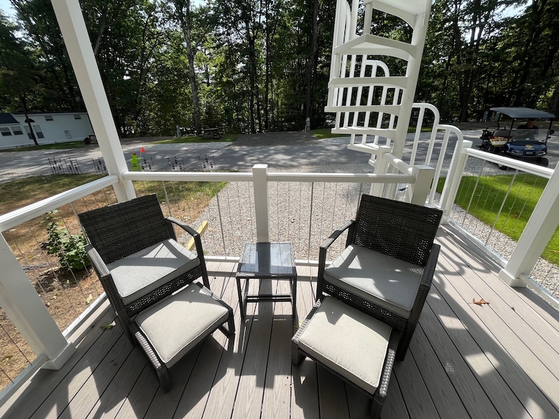 This Park Model was DESIGNED for entertaining! Enjoy your second-story deck that overlooks the vacationing world below! This park model comes completely furnished, drywall throughout, heat/AC pump for a whisper cooling & heating experience, full sized stainless steel appliances and more! Site sale includes a 8x8 shed, stone fire pit and lush sod to finish your site.Features