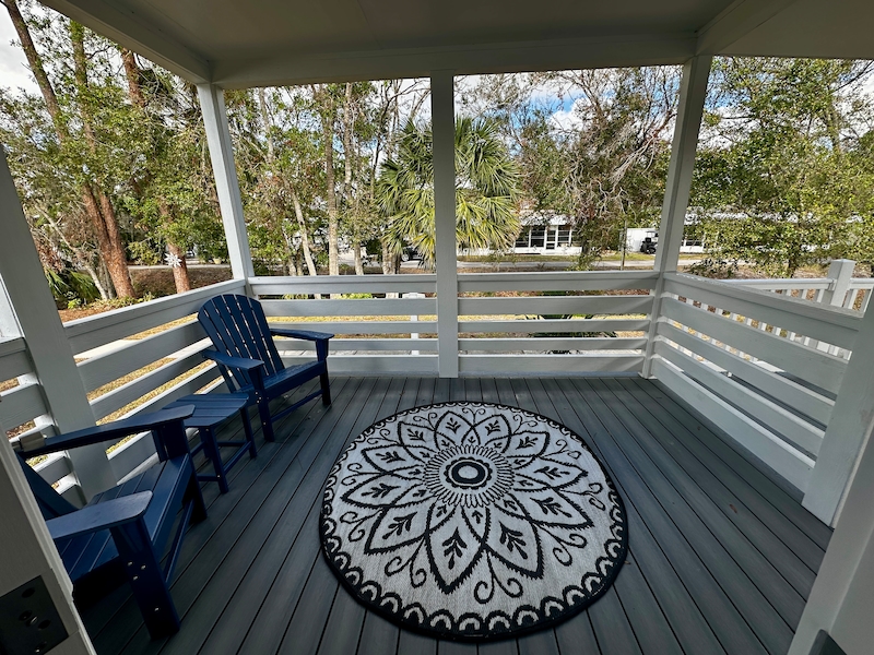 This brand-new Porch model home offers a picturesque view and a thoughtfully designed layout. Enjoy seamless indoor-outdoor living with a covered back porch accessible from the bedroom and a spacious deck extending from the lanai. Move-in ready, this home comes fully equipped with stainless steel appliances, cozy furnishings, and stylish décor. Ideally situated near Woodland Hall, it offers the perfect combination of comfort and convenience.Features