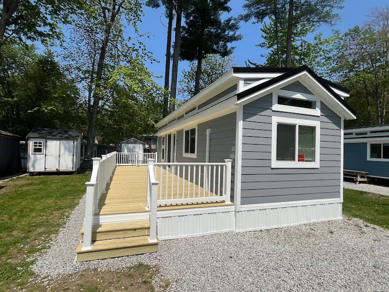 Discover your perfect get-a-way in this fully furnished, 2-bedroom park model by Great Outdoor Cottages. This turnkey unit offers comfort, style and outdoor charm. Property Highlights: 2 Bedrooms + spacious loft, large 10' x 35' deck & skirting, 8' x 8' storage shed, custom stone paver and firepit, lush sod and comes fully furnished - move-in ready! Enjoy comfort and convivence in a serene setting, whether you're looking for a vacation retreat or a seasonal home. Just bring your suitcase and start making memories!Features