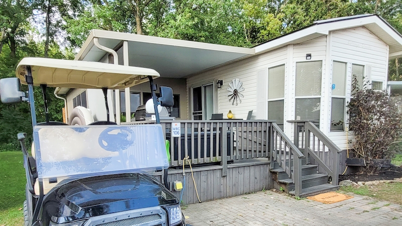 Welcome to Wyldewood Beach Club #106, a rare opportunity to own in one of Sherkston Shores’ most exclusive gated beach communities. This spacious 3-bedroom cottage with an add-a-room offers the ideal blend of comfort, privacy, and resort living. Inside, enjoy bright open-concept living with a modern kitchen, dining area, and plenty of space for family and guests. The add-a-room creates a flexible lounge or entertainment area, perfect for relaxing after a day at the beach. Step outside to a large covered deck designed for outdoor dining and entertaining, a cozy firepit area, and a private treed backyard for added seclusion. Just a short walk or golf cart ride brings you to the sandy shores of Lake Erie, stunning sunsets, and the exclusive Wyldewood clubhouse overlooking the water. Whether you’re searching for a family retreat, seasonal escape, or smart investment in Sherkston’s most desirable location, WBC106 delivers it all—turnkey, move-in ready, and waiting for you!Features