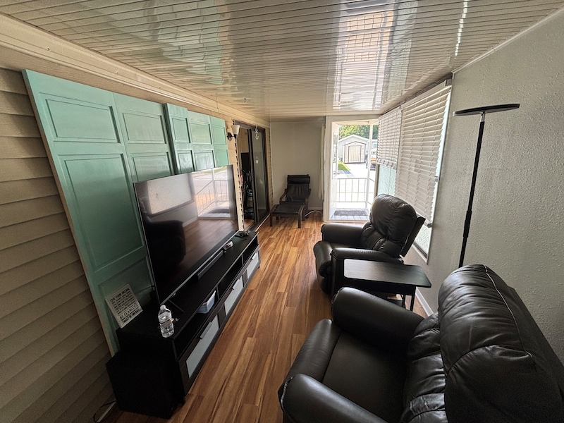 Just Listed - Charming 1BR/1BA in the Premier RV Resort! Your perfect getaway or cozy year-round haven awaits! This updated home combines style, comfort, and function in one package. Step inside the open floor plan and you'll be greeted by alight-filled living space that flows seamlessly into a thoughtfully designed kitchen - optimized for entertainment, even in a compact footprint. The carport functions as a covered outdoor patio, which extends your living space, perfect for relaxing or hosting friends. Storage won't be a problem here: enjoy multiple shelves, two closets, and a spacious attached outdoor storage room, complete with a pressure washer that stays with the home. The A/C has been professionally serviced and is in excellent condition. The outside electrical has been replaced, and the shingle roof was replaced a few years ago and has no issues. Upgrades abound in this home, including: new vinyl bedroom flooring, fresh furnishings, modern electronics, and a stunning 65" smart TV to enjoy your favorite shows and movies. This turnkey home comes with a generator and emergency supplies for peace of mind. The only thing missing is you! Schedule a viewing today before this gem is gone! The home is located in Rainbow Village Zephyrhills RV Resort, the premier active 55+ RV Resort in Zephyrhills Florida. Situated in a quiet country setting but minutes away from shopping, dining , and the hospital. Zephyrhills is one of the most popular destinations for retirees in America. Blessed with a warm climate and an unlimited number of recreational choices, this quaint community attracts many seniors to this beautiful area. So if your retirement dream are golfing, fishing, sunny days by the pool, or just going for a walk, at Rainbow Village you can live your best retirement. Centrally located close to hospital, shopping dining yet set in a picturesque country setting. Sun Homes is an equal housing provider. Home buyer must pass credit and background check. Monthly site rent fees apply. Call 813-782-5075 today to schedule an appointment.Features
