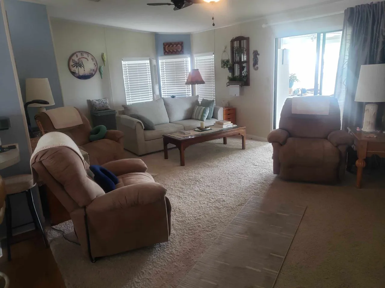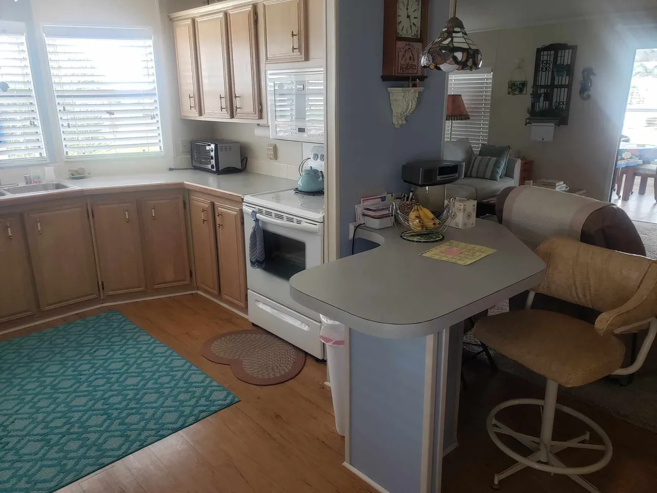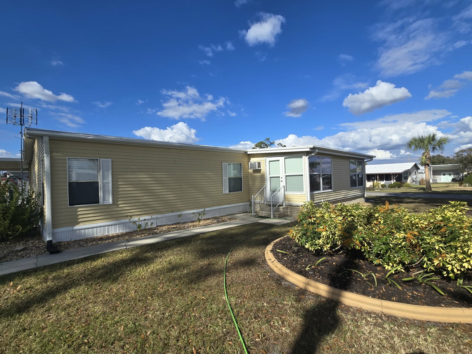 Beautiful 2 bedroom, 2 bath 1800sq ft. furnished home comes with everything you need to feel right at home. Covered carport with storage shed attached, new siding, newer roof, entire outside freshly painted, corner lot, close to ALL amenities, New AC unit, New Roof in 2022, ALL up to date piping needed for insurance purposes, and close to ALL park activities. Entire house hooked up to antenna TV with over 100+ channels with no subscription just ready to watch. Large living room, fully enclosed craft/office/FL room overlooking big Silver Lake. Laundry room with washer and dryer, main bathroom has shower tub combo, spare bedroom has beautiful double bed with wood frame and lots of closet space, master bedroom is very large with king bed, his and her vanity, walk-in shower, and tons of closet space. Kitchen is great size with breakfast nook. Just off the carport you have a double storage space with tons of room leading out to the back porch area to sit and enjoy the gorgeous FL evenings. Come take a look at this very well maintained home today!Features
