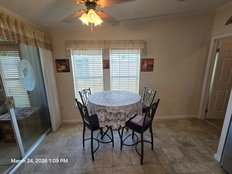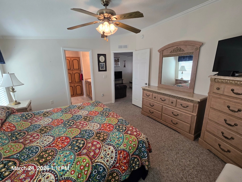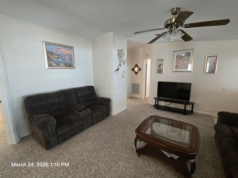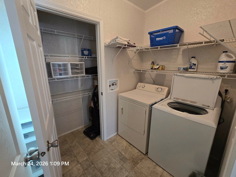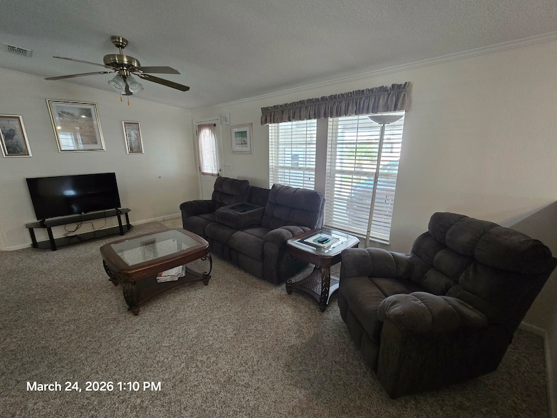 Beautiful 2009 MERT Furnished Home – 3 Bed, 2 Bath Welcome to this charming and beautifully furnished 2009 MERT home offering exceptional comfort, space, and convenience. Featuring 3 bedrooms and 2 full bathrooms, this well‑maintained property provides everything you need for relaxed living and easy entertaining. Step inside to a large, inviting living room that flows seamlessly into a spacious, well‑equipped kitchen, perfect for cooking and gathering. An enclosed family room/porch area adds valuable additional living space—ideal for relaxing, entertaining, or enjoying your morning coffee year‑round. The primary bedroom includes a generous walk‑in closet, a private bathroom, and a comfortable king‑size bed. Two additional bedrooms offer ample closet space and are perfect for guests, hobbies, or a home office. This home is fully furnished and move‑in ready, complete with washer and dryer, dishwasher, and more. Outside, you’ll find ample parking with a driveway, carport, and a golf cart garage—and yes, the golf cart and riding lawnmower are included! Don't miss your chance to see this wonderful property. Come check it out today—this home won’t last long!Features