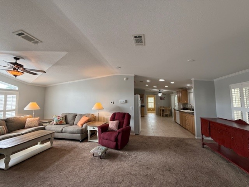 Beautiful, very well maintained 3 bedroom, 2 Bath, 1680sq ft home has everything you would need and so much more. Partially furnished, large and modern. Walking into the home you will find a large Livingroom with a gorgeous window letting in natural light. Big kitchen area with tons of cabinet space, kitchen pantry, dishwasher, double door refrigerator, dining area, etc. Enjoy the fully enclosed sun room making it easy to relax and enjoy all year round. Going into the master bedroom you have a king size bed, lots of space and huge walk-in closet. The master bathroom has gorgeous shower and tons of room. The other 2 bedrooms you will find queen size beds in both as well as large closets. This home has many features worth checking out. New roof in 2022, new water heater 2025, new washer and dryer 2022-23, Plantation shutters throughout home, as well as a private covered are in back of home looking out over the pasture. Come check out this beautiful space and make it your dream home today!Features