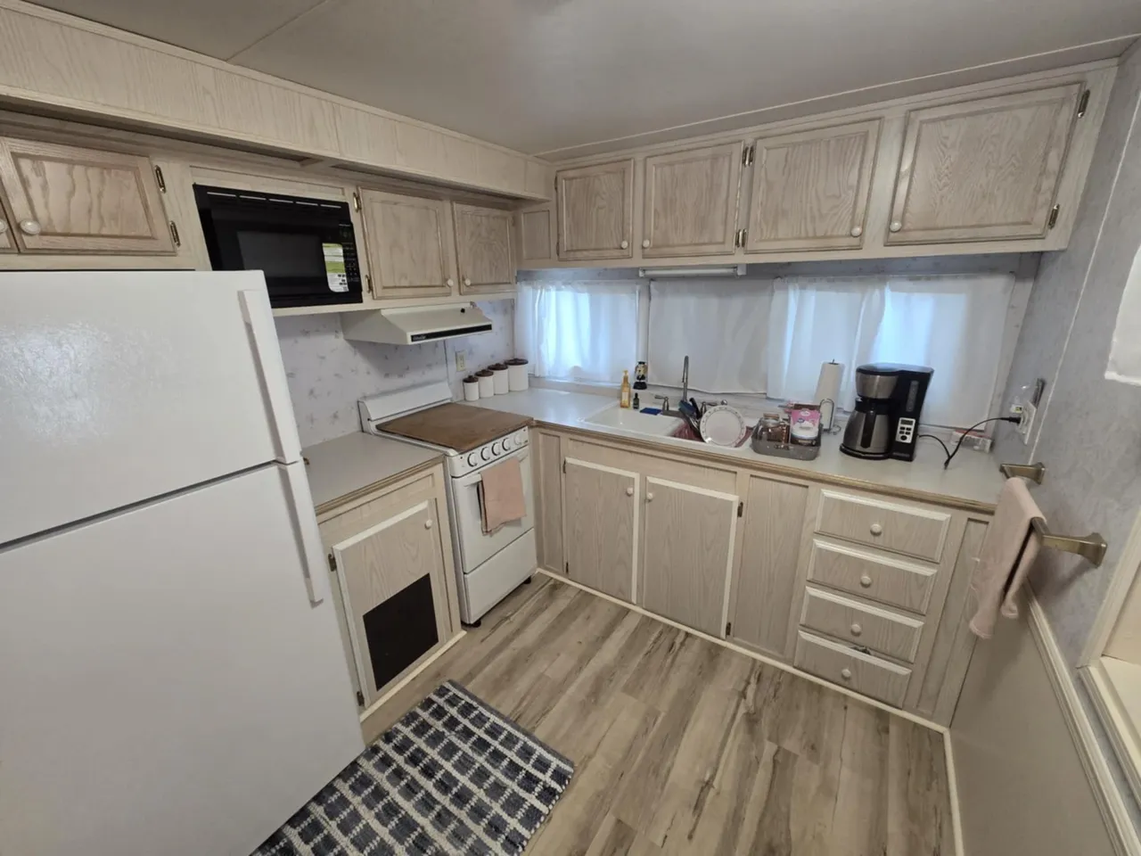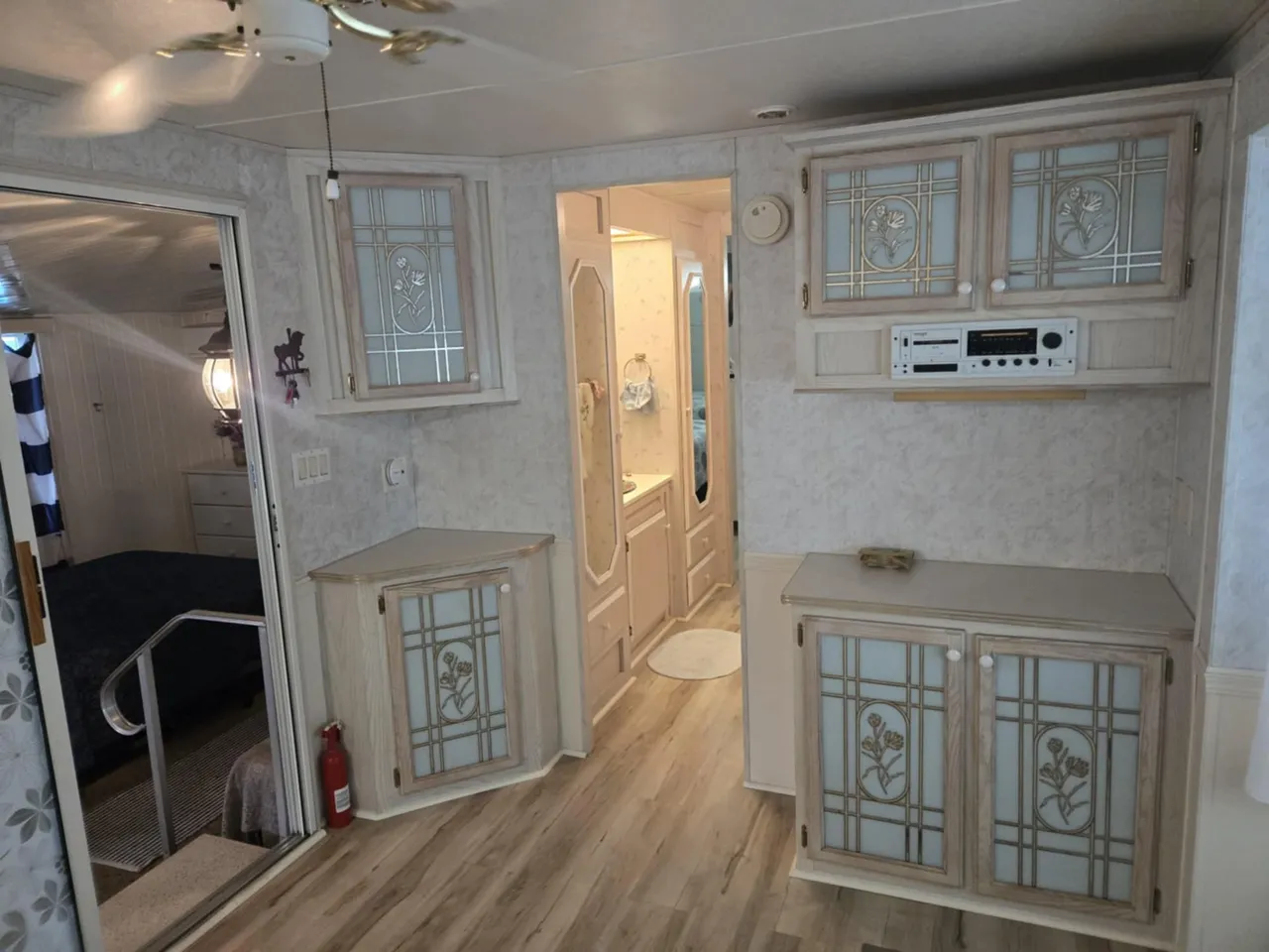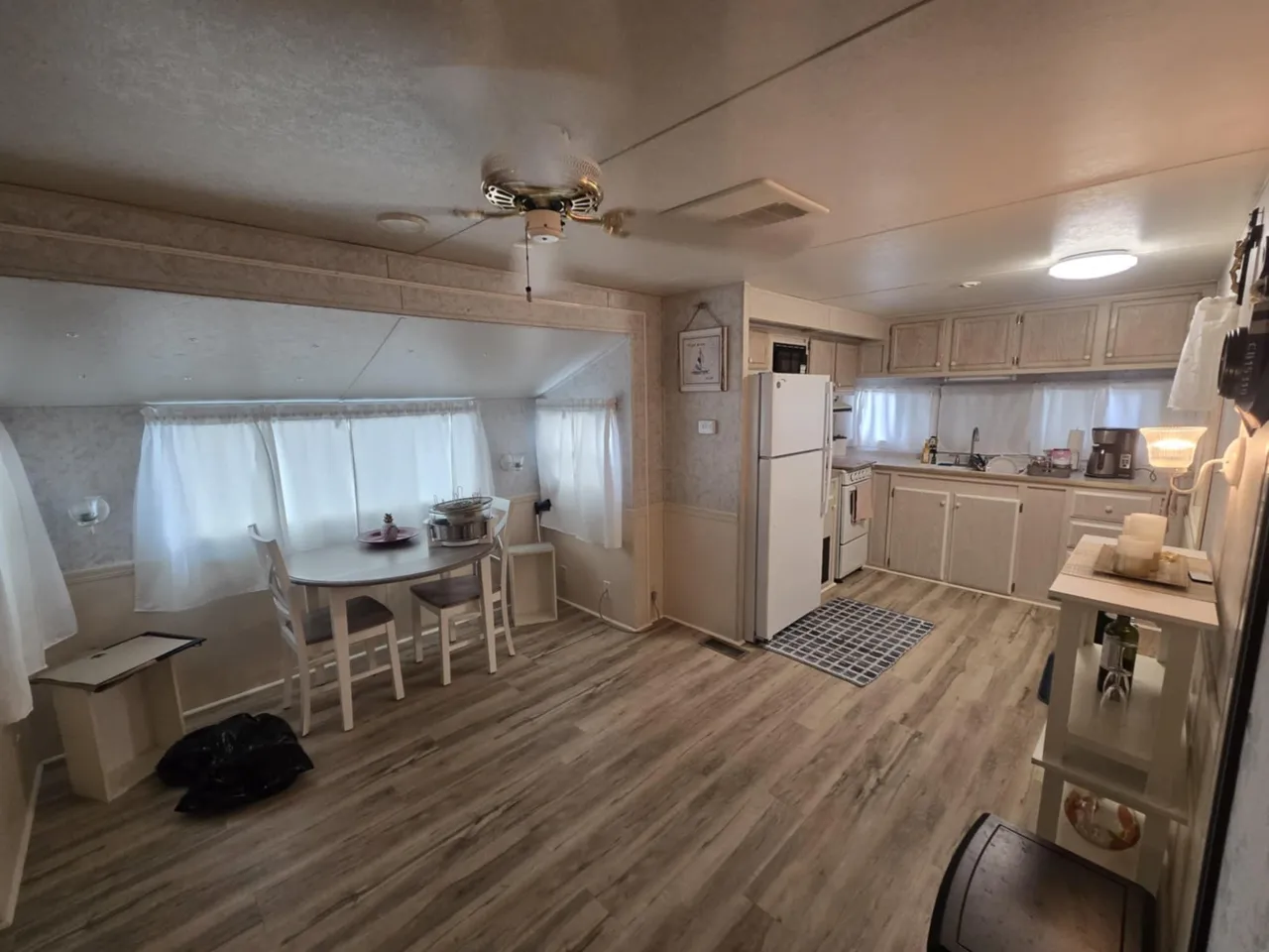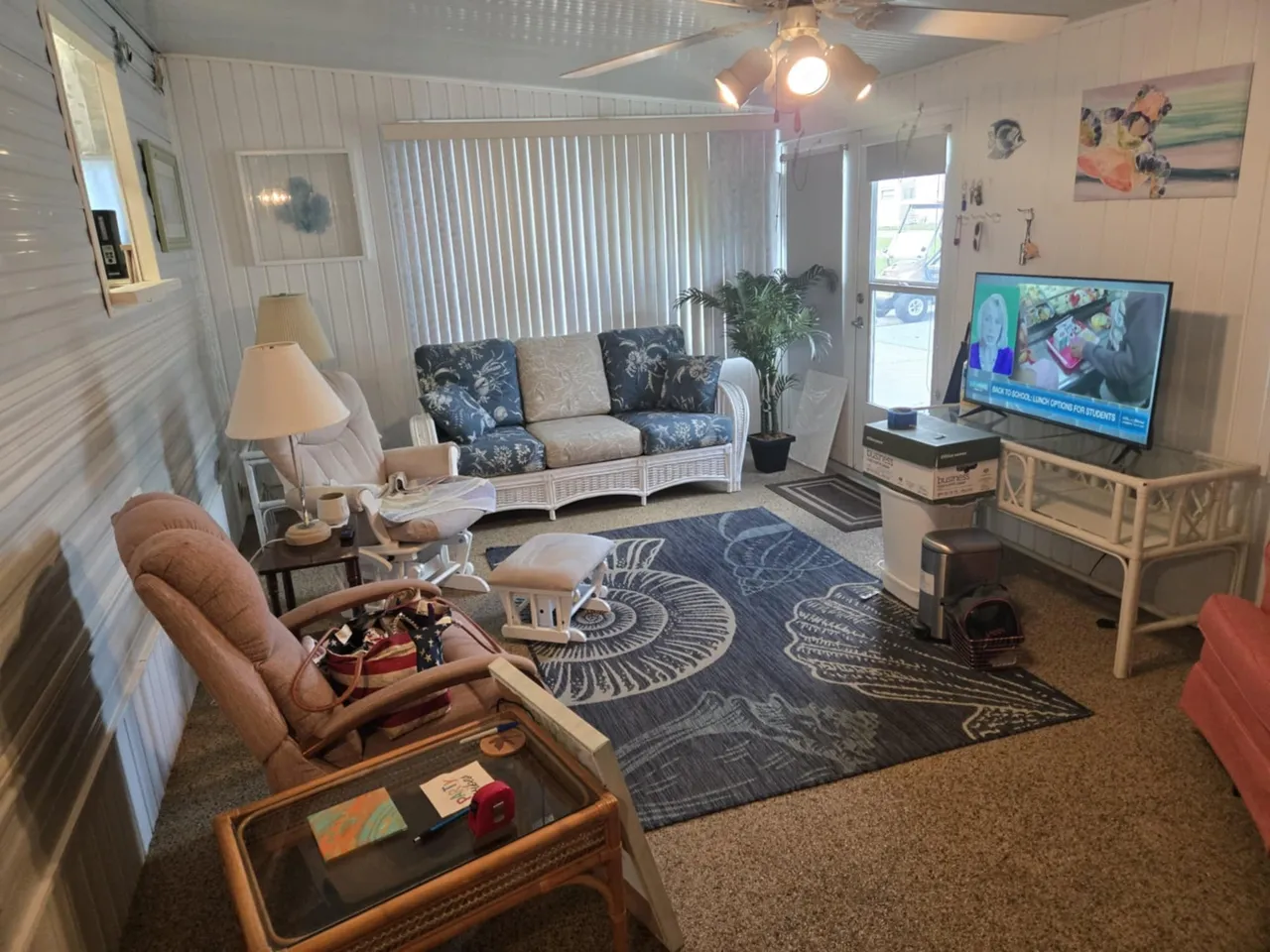 This very well maintained and beautiful 2 bed, 1 bath home has many upgrades including flooring, mini splits, newly designed kitchen etc. Very clean and furnished. Enclosed FL room, 1st bedroom just off FL room with queen bed and closet space, laundry room with washer and dryer included, beautiful dining area, nice size kitchen with plenty of cabinet space, built in cabinets in dining room for added storage or display. passthrough bathroom with linen closet leading to master bedroom with queen bed and lots of closet space. This home has golf cart included, wont last long, must see!Features