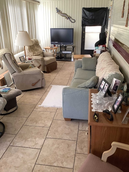 This sweet and very cozy home has been well maintained and is in a great location. Close to all amenities including the clubhouse and large pool. 1 Bed, 1 Bath, Enclosed FL room, furnished, front walkway, outside porch area with shade. Stepping inside the home you will find a good size living and dining area with passthrough kitchen and lots of cabinet space. Bathroom has a shower tub and leads to a bedroom with plenty of closet space. This home has a new AMS roof, glass windows, new siding and so much more. Marked at an amazing price. Come take a look today!Features