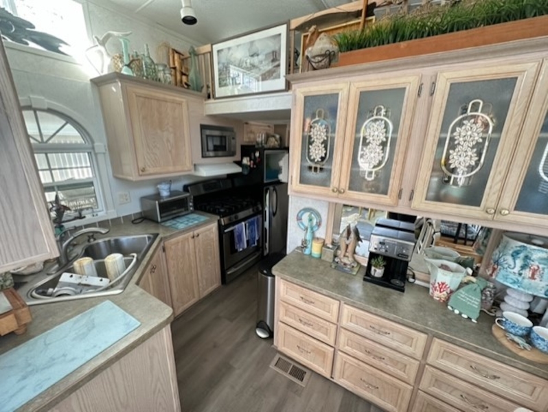 This 2004 Kropf Park Model offers a true turn key option to become the beach home of your dreams! Newly laid vinyl snap lock floor gives the home a modern feel, and its master bedroom, bathroom, double loft and Florida Room, can accommodate families of all sizes. With a large covered deck, and a spacious side yard, hosting get togethers with friends and family is a breeze! Centrally located, across from the community ballfield, parking is in abundance and all amenities are only a short walk or bike ride away. Call to schedule your showing today!Features