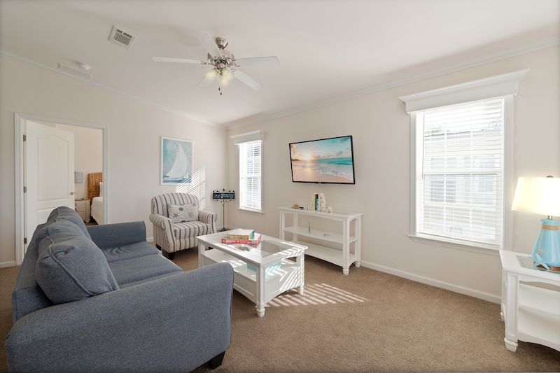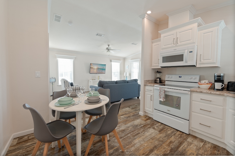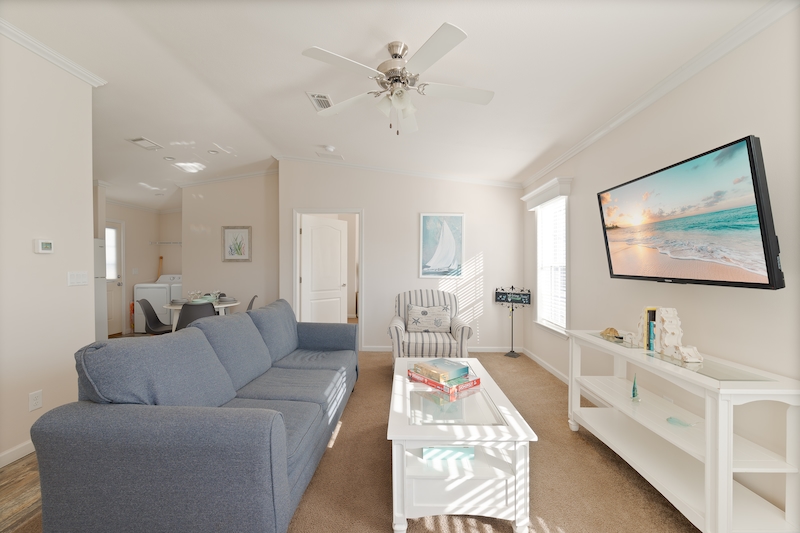 This lovely doublewide home from Champion Homes packs value into every corner with 2 bedrooms and 2 baths. Home comes fully furnished with recently purchased quality furniture and includes kitchen appliances, laundry machines and even comes fully lodged with most small household appliances and decor included. The primary bedroom includes a generous closet and ensuite bathroom. Bedroom #2 at the front of the home is also very generously sized. This is a great home for a small family or as a vacation home. This home is eligible for our 3rd-party vacation rental program, which allows the home to generate income for you on many of the popular vacation rental platforms.Features