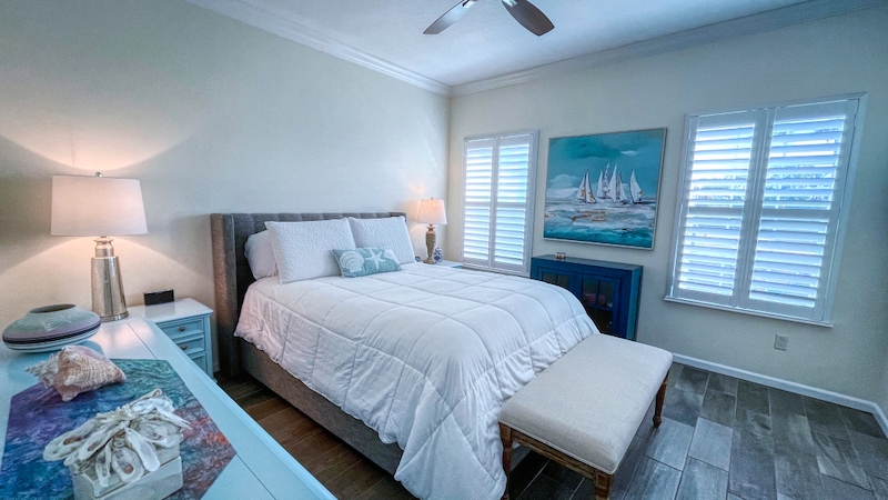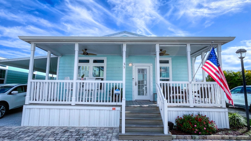 This 2015 Jacobsen home is in beautiful condition and now move in ready! This large 2 bedroom 2 bath home boasts approx. 1,200 sq. ft. with tile floors throughout, high 9 ft. ceilings with lots of natural light, crown molding, a separate laundry room, huge front porch as well as a covered carport and storage shed. This home is very conveniently located just steps from the Historic Downtown Jensen Beach. Call a representative today to schedule a showing!Features