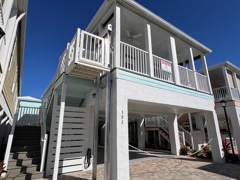 Discover coastal living at its finest in this beautiful 2022 Key West–style stilted home, offering nearly 1,200 sq. ft. of open-concept living space. This thoughtfully designed residence features two spacious bedrooms and two full bathrooms, complemented by tile flooring throughout, impact-resistant windows and doors, and a durable metal roof for peace of mind. An outdoor lift (elevator) provides convenient access to the inviting front porch, making daily living easy and comfortable. Below, the oversized carport offers ample space for multiple vehicles, a boat, or a golf cart—perfect for enjoying the coastal lifestyle. Located within a gated 55+ community, this home is just a short walk to downtown Jensen Beach, where you’ll find charming restaurants, boutique shopping, and a private marina. Beautiful beaches are only minutes away. Residents enjoy a relaxed, resort-style atmosphere with outstanding amenities, including a heated pool, fitness center, pickleball courts, cabana café, and more—ideal for active, social living.Features