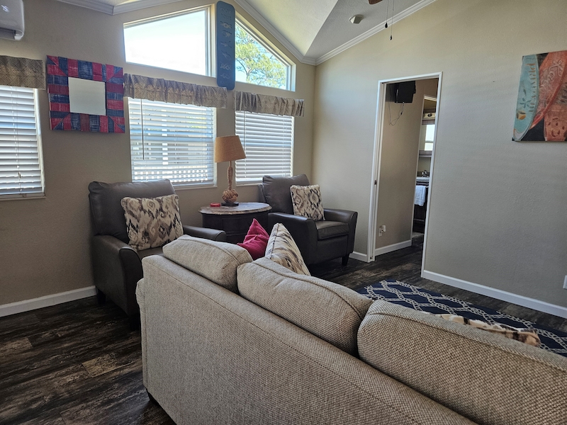 Spacious, two bedroom, 1.5 bath furnished home with a large screened in deck that doubles your living area, while offering protection from the elements when needed. Great home for entertaining or a cozy beach hide away. Euro Mini-Splits provide affordable heating or cooling comfort, each remotely controlled to suite individual needs. Parking space for two vehicles. Home is located in the Dolphin Circle cul-de-sac. Use of resort amenities included. Contact our office today to schedule a showing.Features