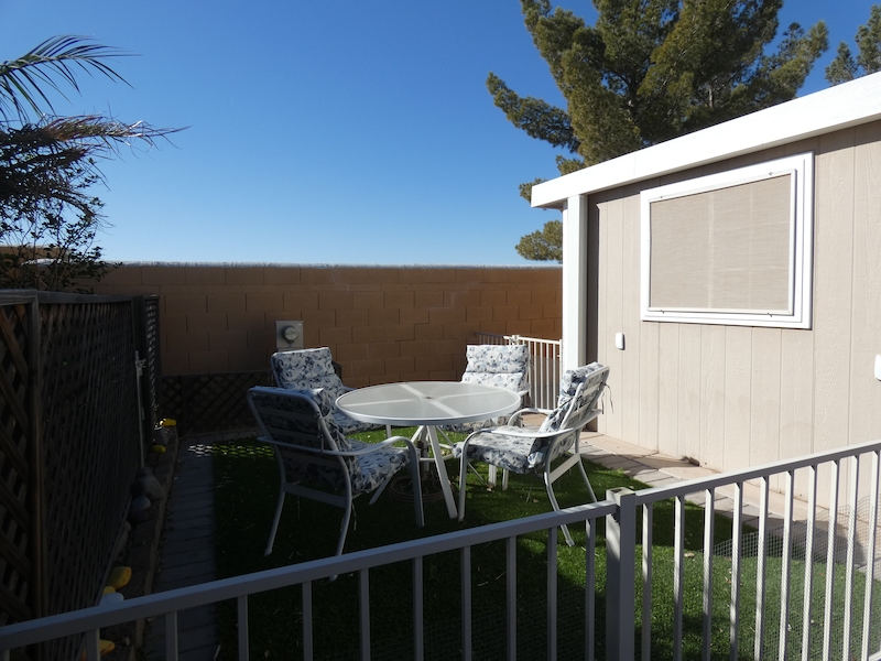 Great wall location, this 2 bedroom , 2 bath home located at 1128 Sandy Desert Drive, has been recently remodeled! The kitchen cabinets have been refreshed and the entire home has had a fresh coat of paint. The open floorplan with easy access to the carport and patios, offers ample room for entertaining or hosting a happy hour. The home has tile floors throughout, stacked washer and dryer and a second bedroom, with a bath across the hall. The oversized primary bedroom, with ensuite and a walk in closet, will provide plenty of privacy. The secluded back patio offers privacy, for reading or relaxing, while the side patio, with turf helps to create your your own oasis. a second seating area with pavers and turf along south side of home. When you own a home at Palm Creek Resort & Residences, you will have access to our many amenities, including golf, pickleball, pools, hot tubs and more. Contact the sales office today and schedule a showing.Features