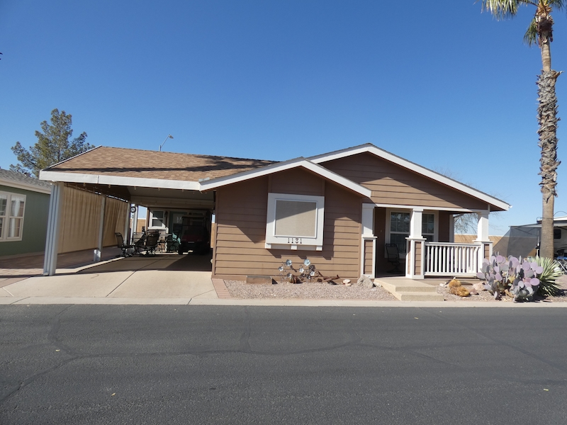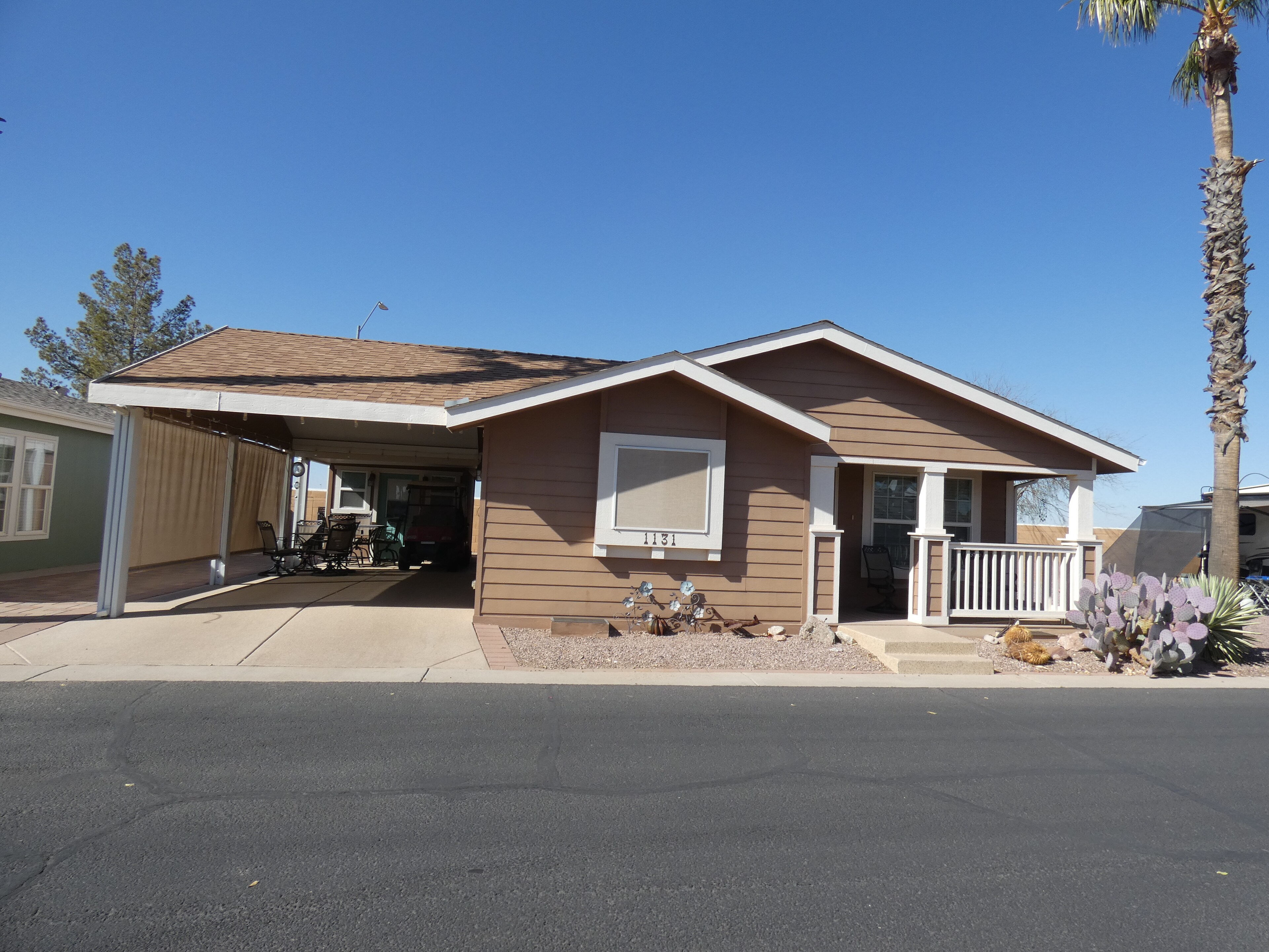 This lovely home at 1131 Sandy Desert Lane comes fully furnished and ready to move in. Located in the pet section of the park the home features an in-carport shed and whole house water softening system Discover the perfect blend of comfort and community with a brokered home at Palm Creek Resort and Residences. Whether you're seeking an active lifestyle, a peaceful retreat, or a mix of both, our resort offers premium amenities, social events, and a warm, welcoming atmosphere in the heart of Arizona’s sun-soaked landscape. The open kitchen has plenty of counter space and stainless steel appliances. The Primary bedroom has an en-suite bathroom with a double sink, walk-in shower. The second bedroom is ready for visitors or use as an office. Second bath is the perfect size and features a tub/shower combo for your guests. Did you know after purchasing your home you can sub lease it? That’s right, your home can work for you! Contact the sales office today to see this beautiful home.Features