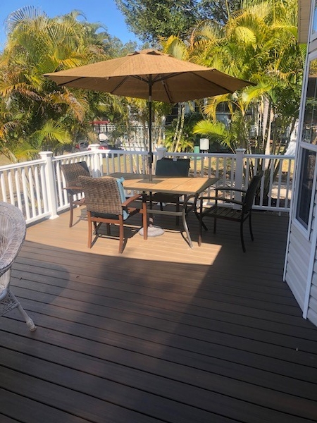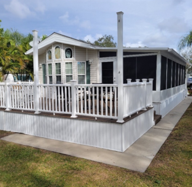 This beautifully situated 1-bedroom, 1-bathroom home with a raised lanai overlooking Alligator Pond offers the perfect blend of comfort and scenic beauty. The massive 15x30 Trex deck provides ample space for outdoor relaxation, where you can take in stunning views and breathtaking sunsets. Inside, the home features a spacious king-size bed, a powerful 3-ton AC unit that cools both the home and the lanai, a brand-new water heater, a refrigerator, a microwave, and energy-efficient LED lighting in the front and back, golf cart included. Whether you're looking for a peaceful retreat or a place to entertain, this home has everything you need.Features