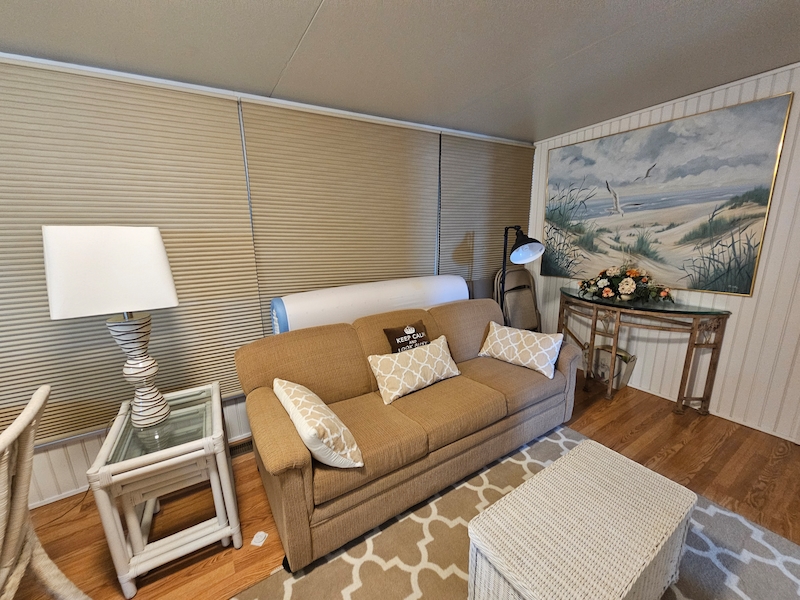 Located on the desirable east end of the resort, this home features a raised lanai, an expansive bathroom, brand-new flooring, a new metal roof, and a private washer and dryer for added convenience.Features