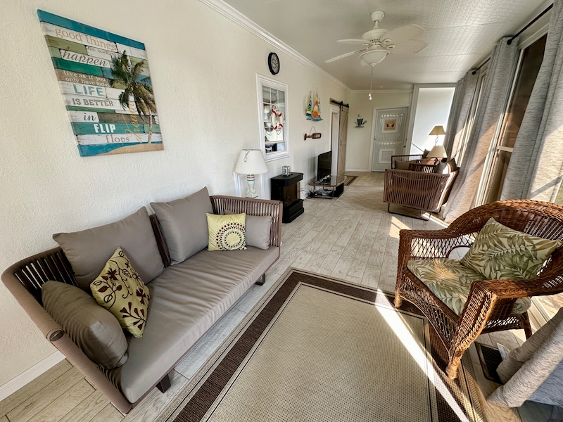 Savor breathtaking sunsets over Westfield Pond from the comfort of your covered deck or patio in this charming abode. Revel in the upgraded details, including textured walls throughout, extending seamlessly into the lanai. The kitchen boasts modernity with stylish Black / SS appliances, including a dishwasher. Step onto the tiled lanai, where the ambiance is enhanced by an additional A/C unit and the convenience of an extra half bath for guests. This home comes fully furnished, presenting a turnkey opportunity for you to move in and start enjoying the serene surroundings immediately. Elevate your living experience with the perfect blend of outdoor beauty and interior comfort. Don't miss the chance to make this sunset-view retreat your own – a home that harmoniously combines style, functionality, and natural splendor.Features