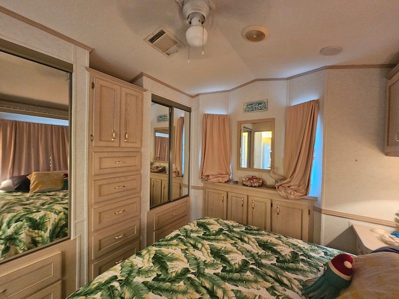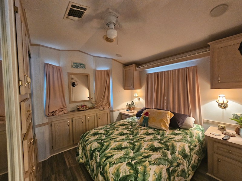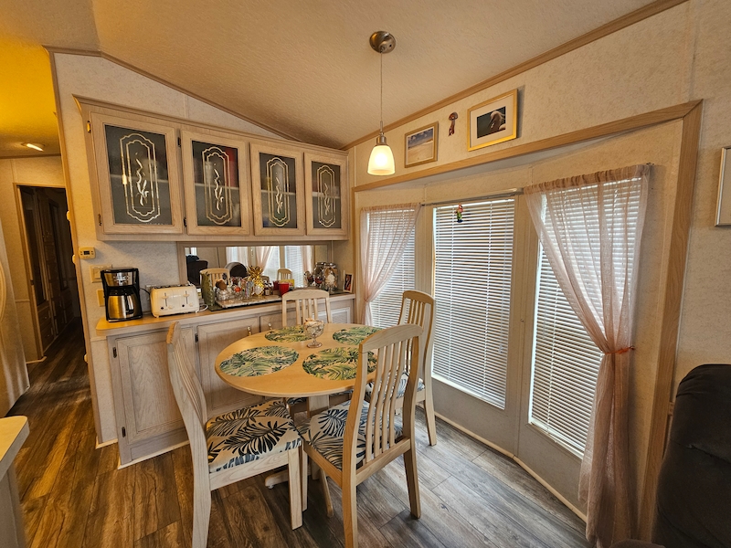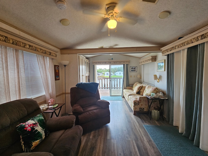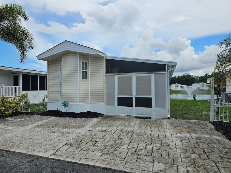 This charming one-bedroom convertor home on Sun Lake offers a perfect blend of comfort and style. Enjoy your mornings on the spacious deck overlooking the serene lake, or enjoy a BBQ with your guests on the concrete patio. The ground-level lanai provides an ideal spot for relaxation, while the interior boasts beautiful laminate flooring throughout. The open floor plan ensures a seamless flow between the living areas, making the space feel bright and airy. With its prime location and thoughtful design, this home is a true gem.Features