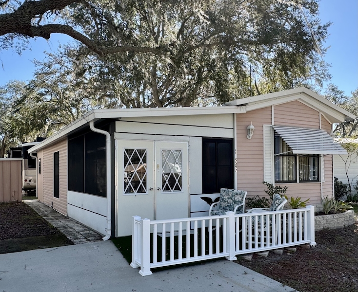 Very charming park model home located on a shaded site in our beautiful 55+ active community. Featuring 2 bedrooms and enclosed screen room for relaxing. Includes a large 10'x12' storage shed in the back yard. On site amenities; 3 heated swimming pools, a hot tub, pickleball, shuffleboard and a year round activities package.Features