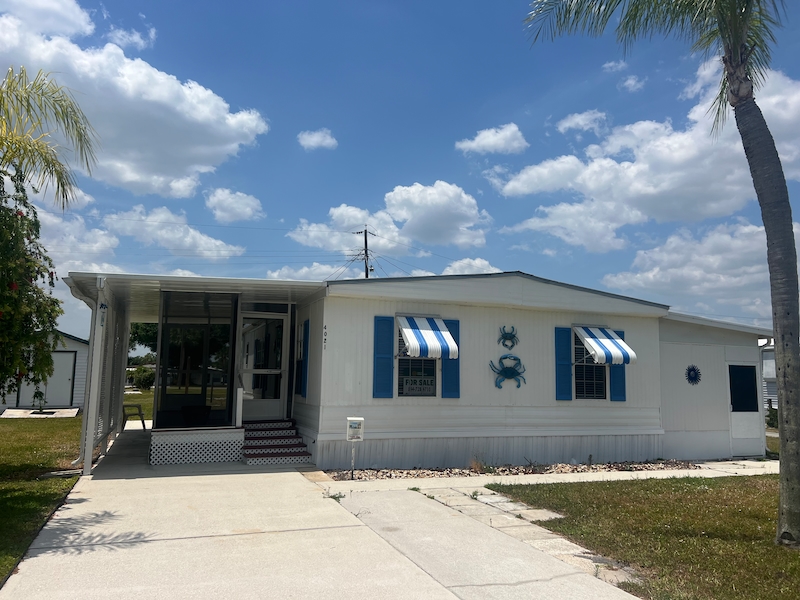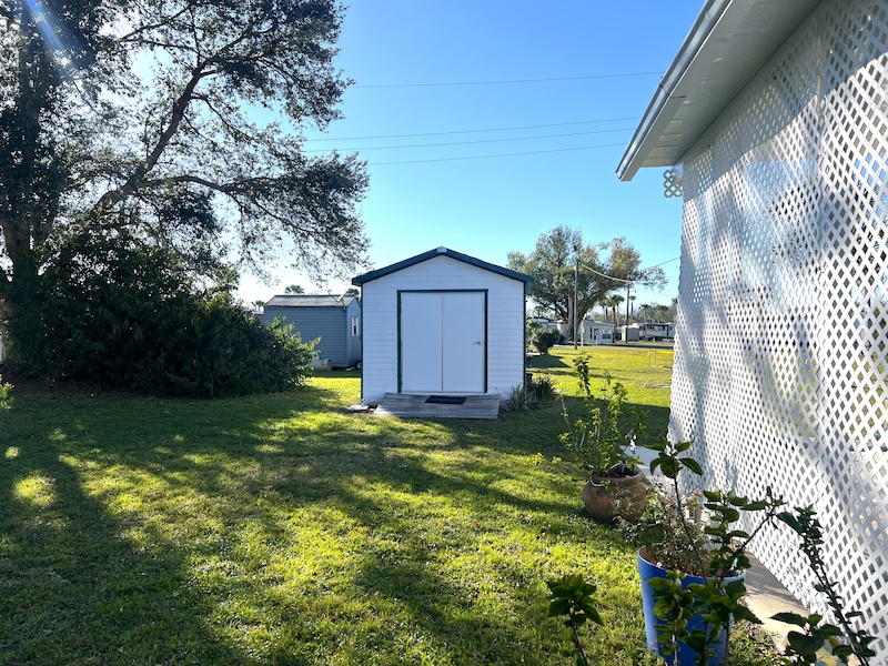 This home is located in Shell Creek RV Community which is a 55+ Active community located in Punta Gorda, just 15 minutes to the downtown and area and airport. Shell Creek has many amenities including a marina. Visit ShellCreekRV.com. The home is located on a large lot and is impeccably maintained. The open floorplan comes furnished and features a large living room, dining area and a pass through kitchen. The kitchen has a glass top stove, dishwasher and microwave. There is a closed in lanai that offers storage and a laundry area with a mini split AC. The Guest bedroom is roomy and the guest bath has a walk-in shower. The Primary bedroom is very spacious and includes an ensuite bathroom with walk-in shower and double closets . New Metal Roof has been installed July 2025 and is perfect for a Florida home, giving it strength and high wind resistance. Waterproof , laminate flooring has been installed throughout the home in 2024. Additional features include a screened-in 8' X 16' porch and a 10' X 15" patio. The shed is 12' X 16', giving you plenty of storage. This home has mature and healthy landscaping, just what you need to enjoy peaceful days here at Shell Creek. Book your showing today by calling 844-728-4710.Features