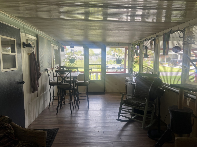 This home sits on an oversized, peaceful lot in Shell Creek RV Community. The 10 x 28 screened in lanai is perfect for entertaining or enjoying your morning coffee. If you like to cook, this is the kitchen for you with butcher block countertops, glass top stove, farmhouse sink, ample storage, dishwasher and dining area. This kitchen opens to the living room and the hallway leads to guest bedroom and bath. The guest bedroom serves as an office/den and has a futon for extra sleeping space. The bathroom has been remodeled with walk-in shower and tile backsplash. The hallway houses the newer washer and dryer. The Primary bedroom has new wall paneling with double built-in closets and drawers. The outside of the home features mature landscaping with large back yard. Can't you see yourself sitting under that large live oak relaxing in the shade in beautiful southwest Florida. If you want storage space, this home has two sheds including one that is 10 x 15 with window AC, which would be a perfect place for a workshop. In addition, there is additional storage for recreational items. This house is a must see. Book your appointment today or we can show you virtually if you are out of town.Features