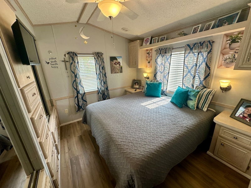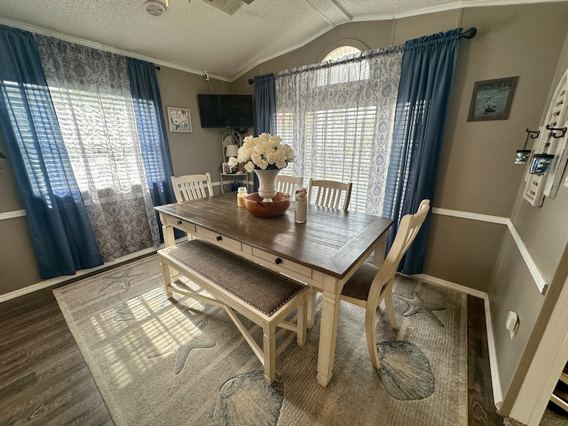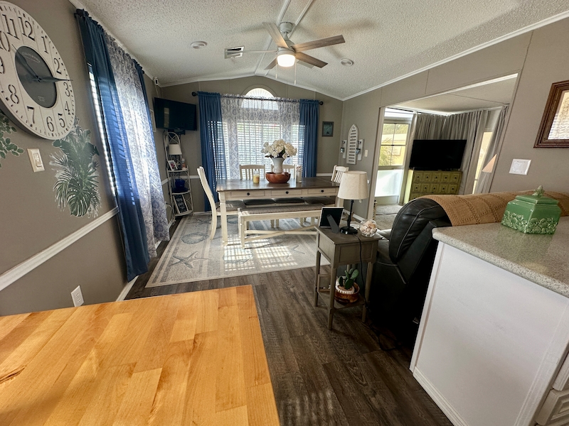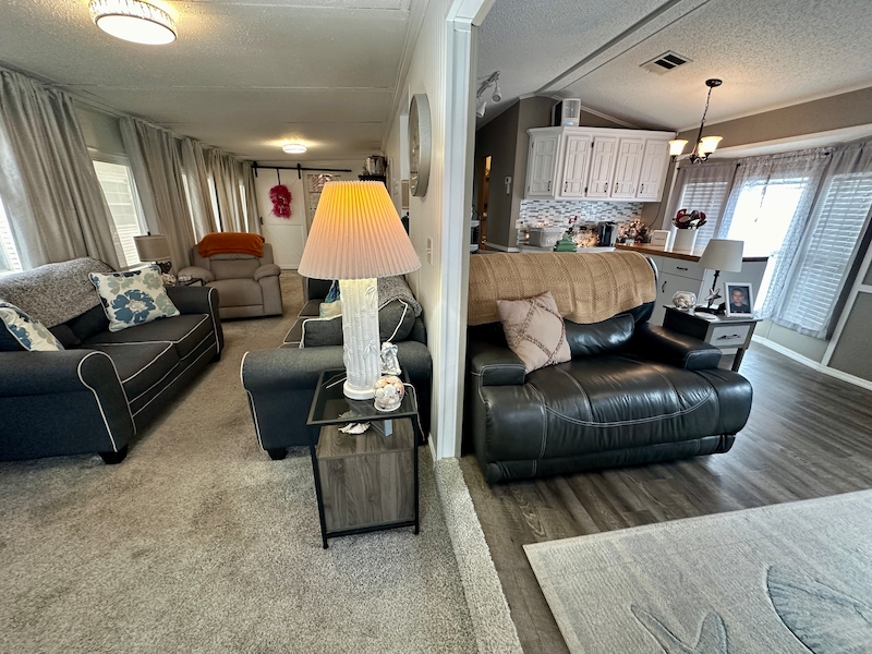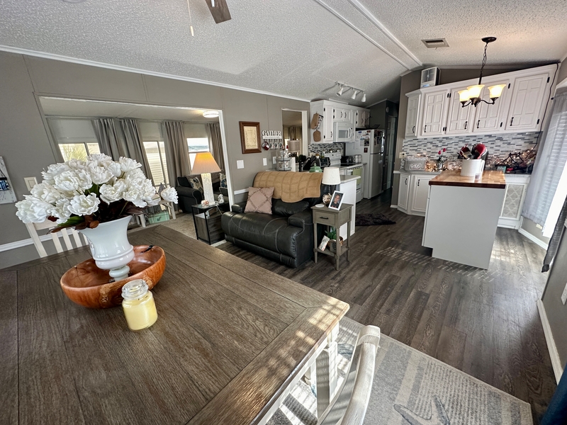 Discover the allure of this modernized residence boasting an expansive open layout. Revel in the elegance of a pristine white kitchen complete with sleek cabinets, tiled backsplash, and state-of-the-art appliances nestled around a central island. Enjoy the convenience of hard surface countertops and the charm of a raised lanai, all under the enduring protection of a lifetime rubber roof. Step outside to embrace the tranquility of two inviting outdoor sitting areas including an newly added 5*9 shed. Welcome home to a blend of comfort and style.Features
