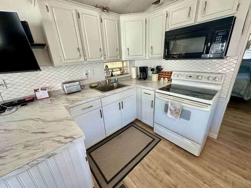 Discover the charm of this delightful abode boasting one bedroom and one bathroom, recently refurbished with a luxurious walk-in shower. Revel in the modernized cabinets, stylish tile backsplash, and fresh flooring. Enjoy leisurely moments on the inviting side patio or within the cozy shiplap-walled lanai, complete with both AC and heat for year-round comfort.Features