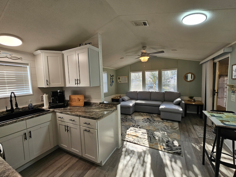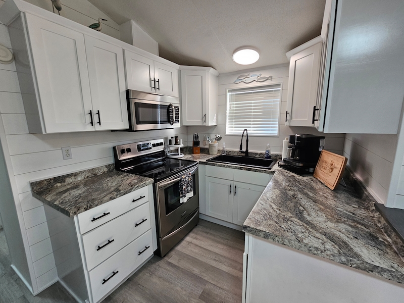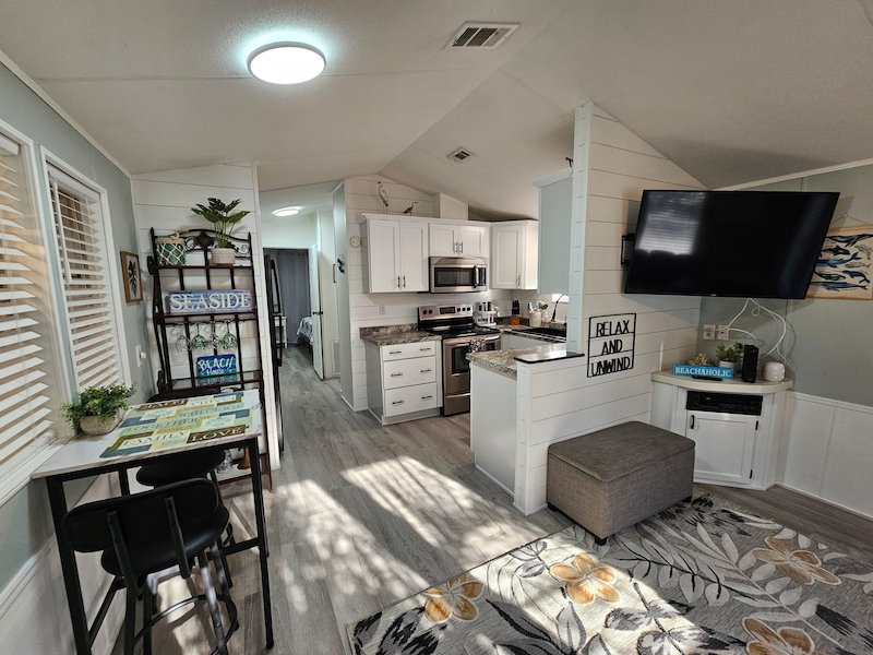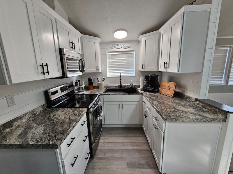 This East End 1 bedroom, 1 bathroom home has been moderately updated to offer a bright and comfortable living space. Shiplap accents and new white kitchen cabinets give the home a clean, modern look with stainless steel appliances. The enclosed lanai provides valuable additional space, ideal for entertaining guests or enjoying quiet moments, and enhances the home’s overall functionality. Added king size bed and new hardware throughout. Located in a desirable resort community, this home is move-in ready and waiting for you—schedule your showing today!Features