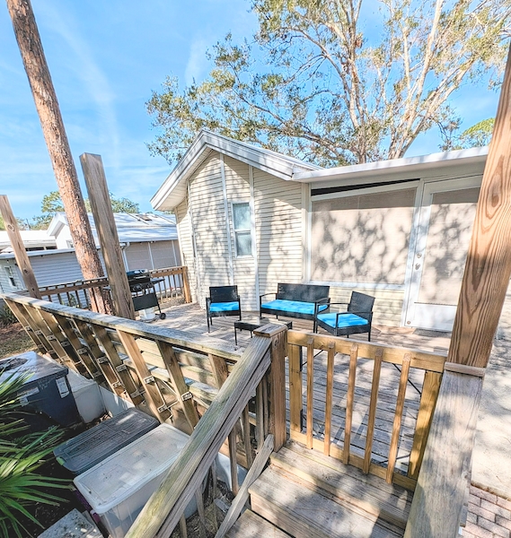Nestled on the serene Florida wetlands, this beautifully maintained 1-bedroom, 1-bathroom home offers a private retreat complete with a picnic area and a spacious 22x10 deck overlooking the picturesque landscape. Backing onto a natural Preserve, this one of a kind property, offers peaceful views and quiet surroundings and a rare combination of comfort, privacy, and functionality where you will enjoy a hard to find sense of privacy with no rear neighbors. Inside, you'll find several upgrades including raised lanai, granite countertop, stunning white cabinetry, stainless steel appliances, dishwasher, all complemented by stylish new furniture. Recent updates include a new membrane roof (2023) and a new heat pump (2024). The home also features a convenient laundry room and a cozy lanai with new thermal insulated blackout curtains. The price has been reduced and owners are open to considering reasonable offers.Features