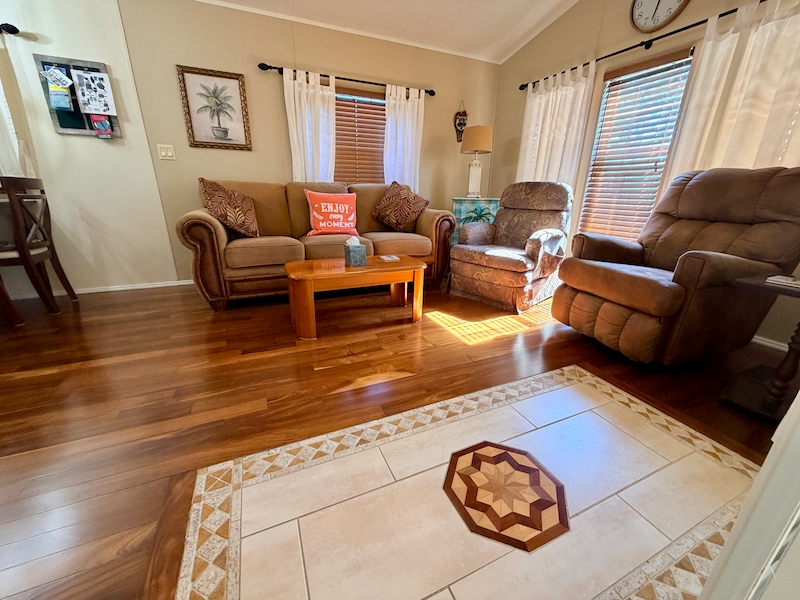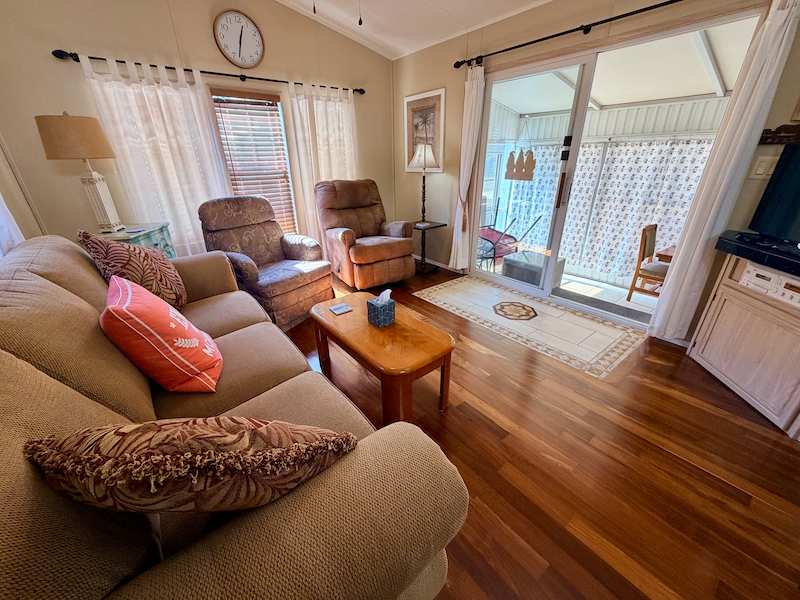 Enjoy the best of Florida living in this charming home with a fantastic outdoor space! Relax on the spacious patio or unwind in your own backyard oasis overlooking peaceful wetlands and lush wooded views. The bright, tiled lanai is perfect for entertaining and even includes an extra half bath. Inside, you’ll love the cozy 1-bedroom, 1-bath layout featuring a beautifully remodeled walk-in tiled shower and stunning hardwood floors with an eye-catching inlaid pattern. This home is full of character and ready for you to make it your own!Features