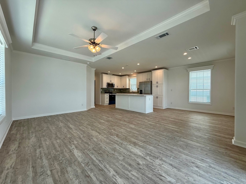 This brand new Skyline home is now move in ready! This large 2 bedroom 2 bath boasts approx. 1,200 sq. ft. and has a beautiful open floor plan. This home is stunning inside and out with its LVP flooring throughout, large kitchen island, crown molding, soft close cabinets, ample storage, and a front porch to sit back and enjoy the beautiful breezes and sunshine. This home also comes with a huge carport and an outside storage shed for additional storage. Call a Representative today to schedule a showing.Features