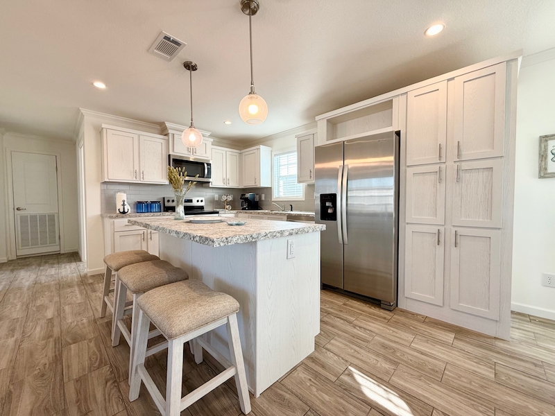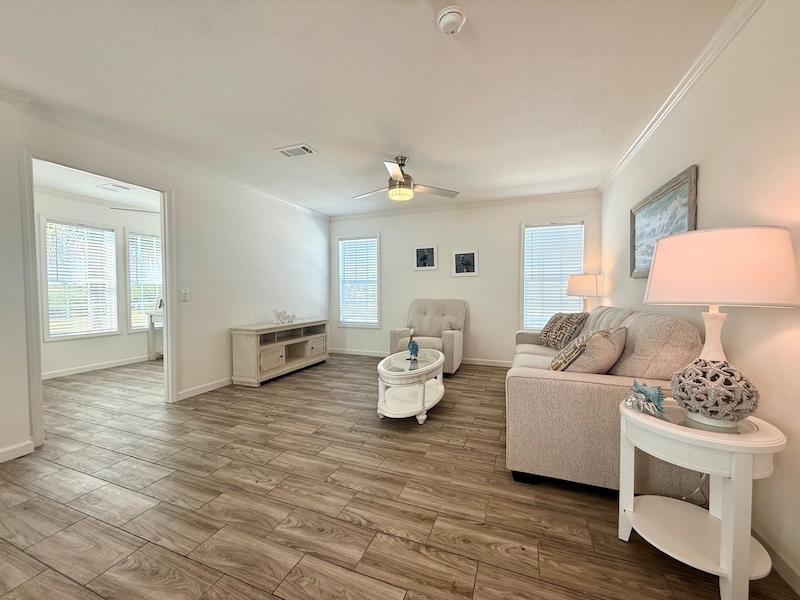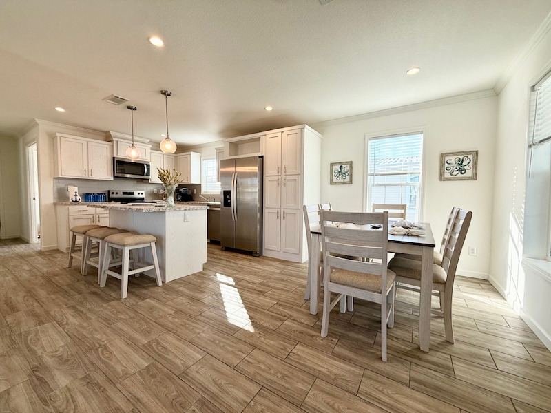 This stunning brand new Champion home is almost complete and will soon be move in ready. This spacious home consists of 2 bedrooms, 2 full baths, plus a Den and it's open floorplan makes it a perfect flow of comfort and practicality. KI60 also has a beautiful front porch and a full carport with a storage shed. Call us today to learn more or schedule a home tour! Exterior photos coming soon.Features