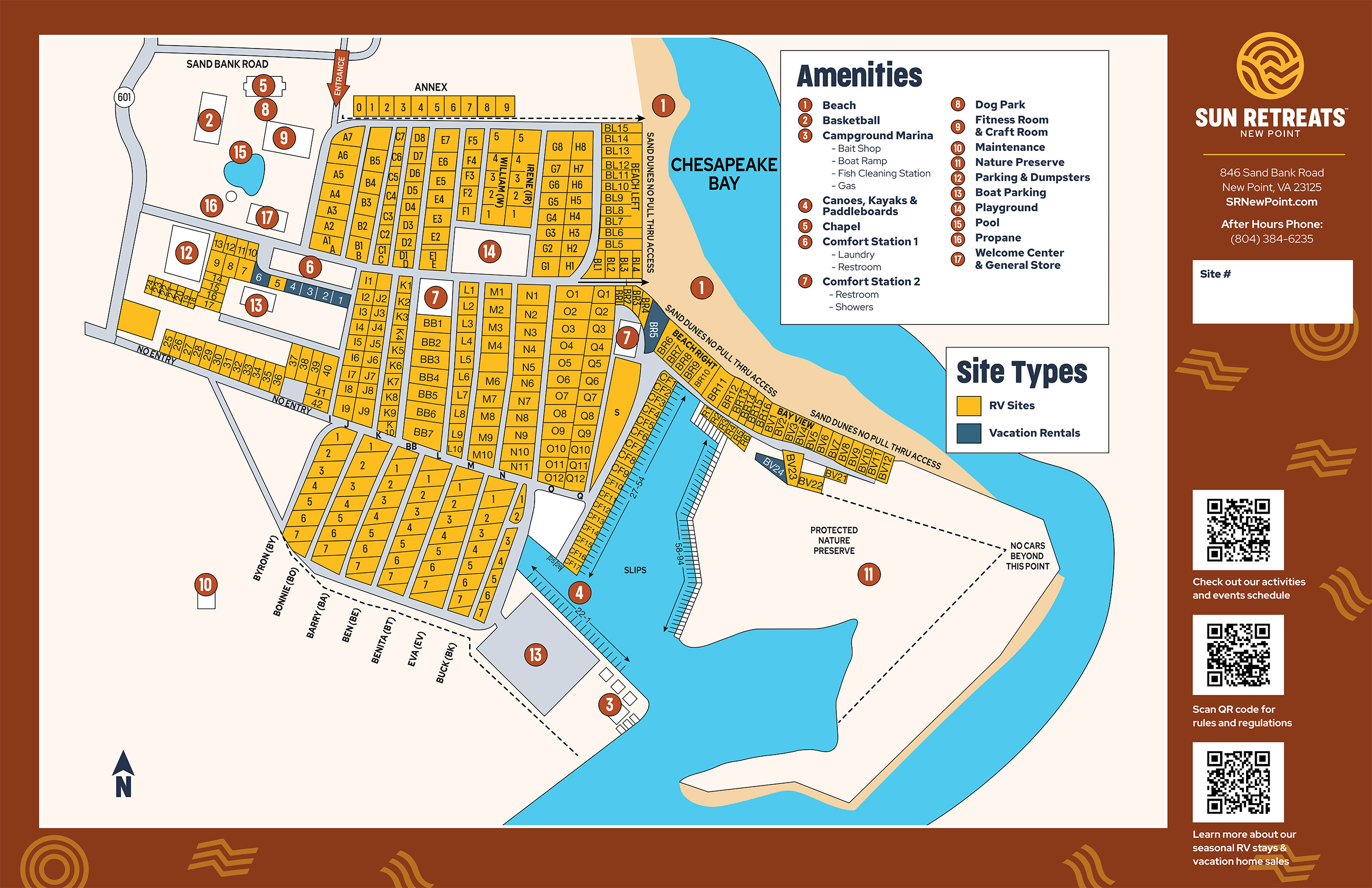 Experience life by the water at Sun Retreats New Point, formerly known as New Point RV Resort. This resort offers spacious RV and tent camping sites, as well as furnished vacation rentals. Enjoy the natural beauty and adventure of the Chesapeake Bay when you stay at our vacation destination in New Point, Virginia.