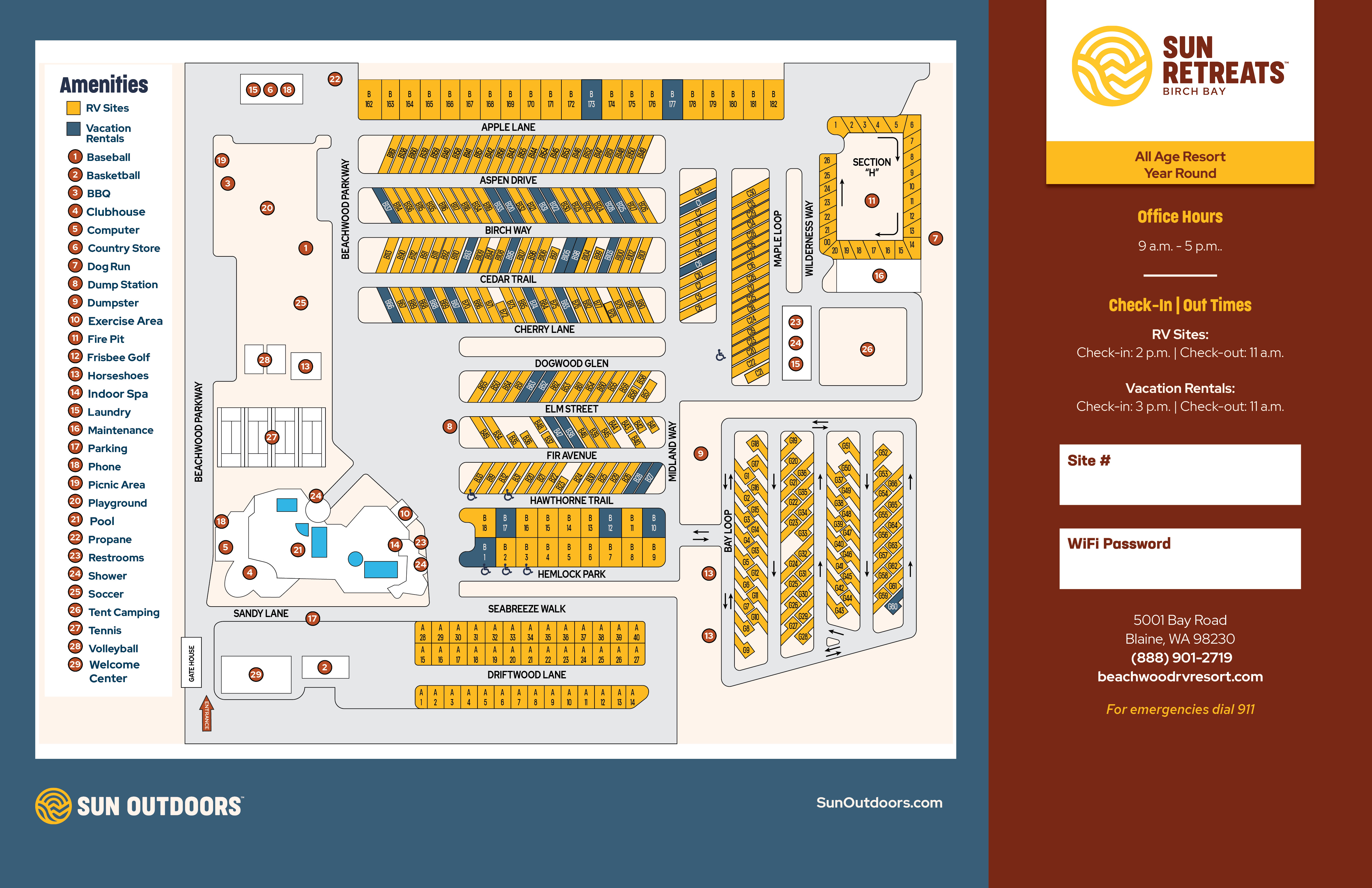 If you love wilderness at its prime, Sun Retreats Birch Bay, formerly Beachwood RV Resort, has everything you need for your next getaway to Washington State. With an outstanding location in Blaine, near the gorgeous area of Birch Bay, there's plenty of local attractions and fun things to do for everyone to enjoy.